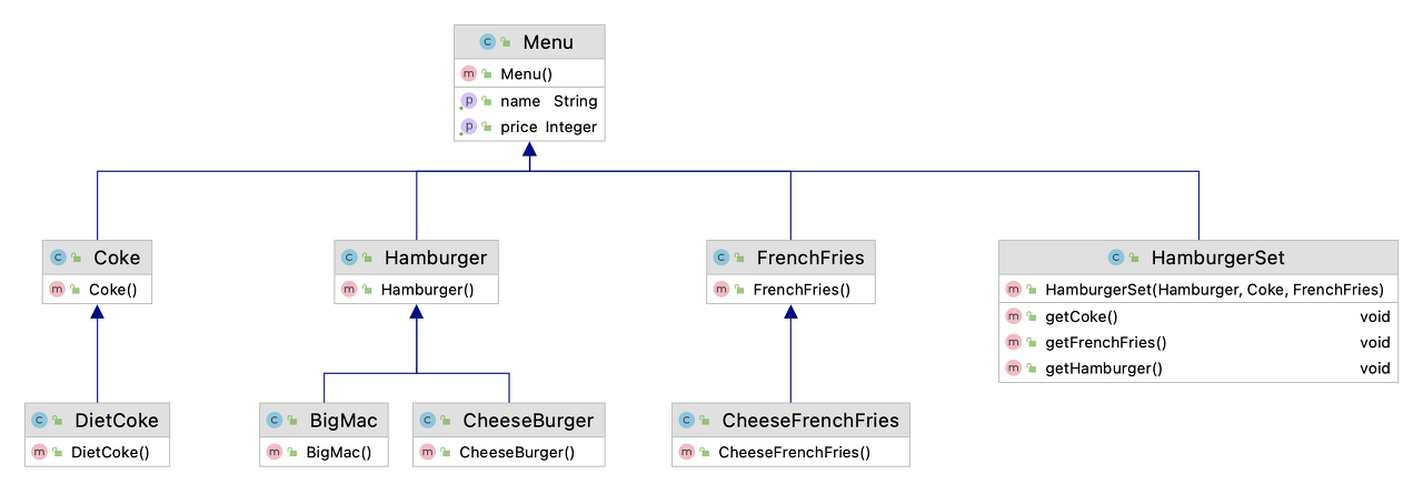 HamburgerSet cheeseBurgerSet = new HamburgerSet(cheeseBurger, coke, frenchFries);