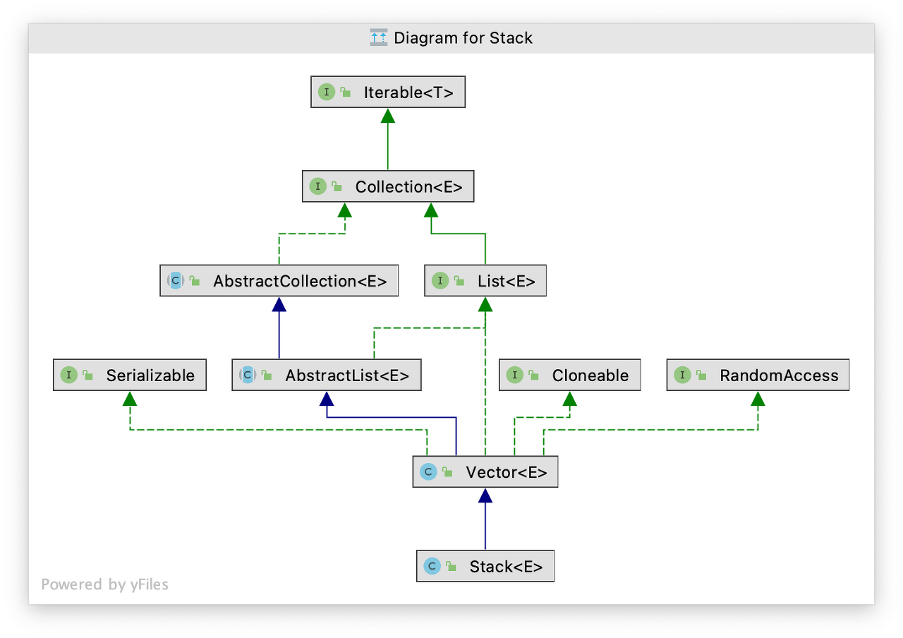 Stack ํด๋์ค๋ LIFO(์ ์ ํ์ถ)์ ๊ตฌ์กฐ๋ฅผ ๊ฐ์ง๋ ์๋ฃ๊ตฌ์กฐ์ด๋ฉฐ, Vector ํด๋์ค๋ฅผ ์์ ๋ฐ์ ํ์ฅํ๋ค. Vector ํด๋์ค๋ฅผ ๊ทธ๋๋ก ํ์ฅํ๊ธฐ ๋๋ฌธ์ Vector ํด๋์ค์ ๋ฌธ์ ์ ์ ๊ทธ๋๋ก ์ด์ด ๋ฐ๋๋ค.