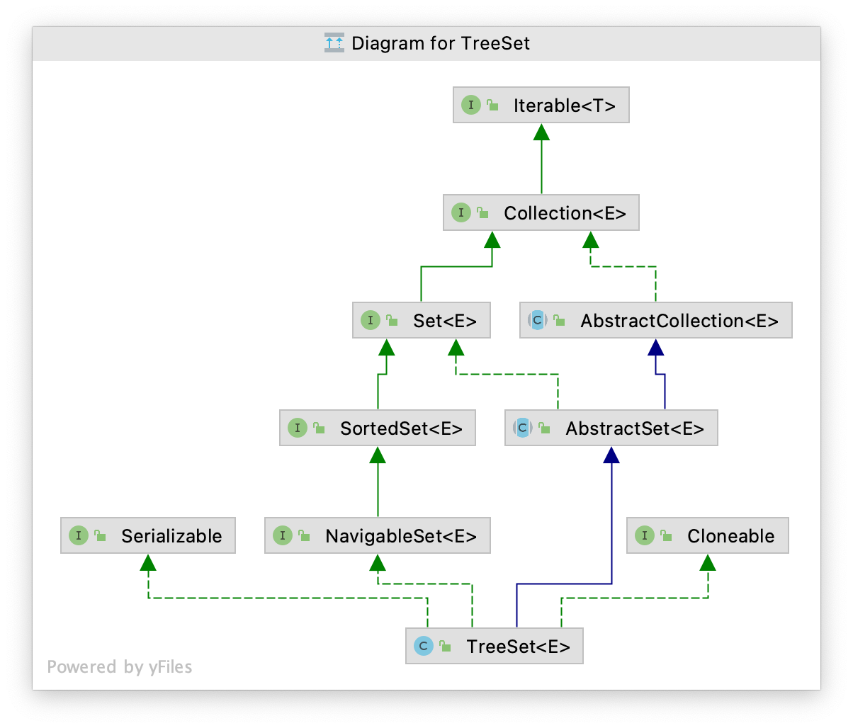 TreeSet ํด๋์ค๋ HashSet๊ณผ ๋ฌ๋ฆฌ ์ด์ง ํ์ ํธ๋ฆฌ๋ฅผ ์ด์ฉํด์ ๊ตฌํ๋์ด ์๋ ํด๋์ค์ด๋ค. ๋๋ฌธ์ ๋ฒ์ ํ์๊ณผ ์ ๋ ฌ์ ์ ๋ฆฌํ๋ฐ, ์์ ํด๋์ค ๋ค์ด์ด๊ทธ๋จ์ ์ดํด๋ณด๋ฉด HashSet ํด๋์ค์ ๋ฌ๋ฆฌ SortedSet ์ธํฐํ์ด์ค๋ฅผ ํ์ฅํ NavigableSet ์ธํฐํ์ด์ค๋ฅผ ๊ตฌํํ ๊ฒ์ ํ์ธ ํ ์ ์๋ค.